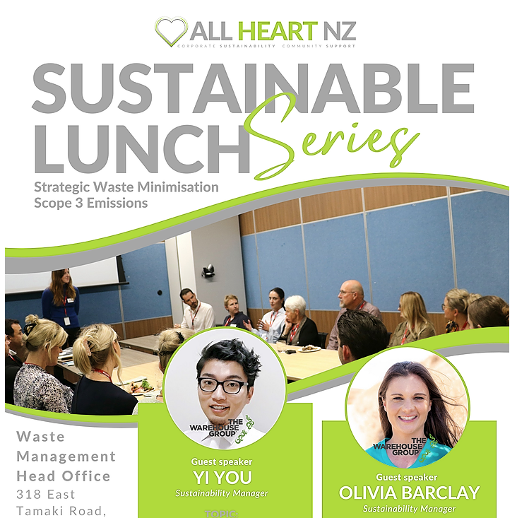 All Heart NZ’s Sustainable Lunch Series aim to educate, connect and empower key decision makers to further their organisation’s sustainability efforts. During each event we hear about different organisation’s strategy and the good work being done. We invite you to join us to learn, network and share your own experiences with like-minded people. In this session hear from guest speakers Yi You and Olivia Barclay, Sustainability Managers at The Warehouse Group.